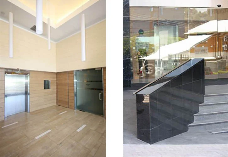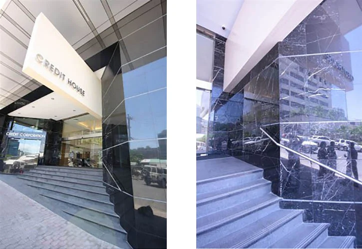 Entry Façade - Black Galaxy Granite Entry Façade - Nero Marquina Marble