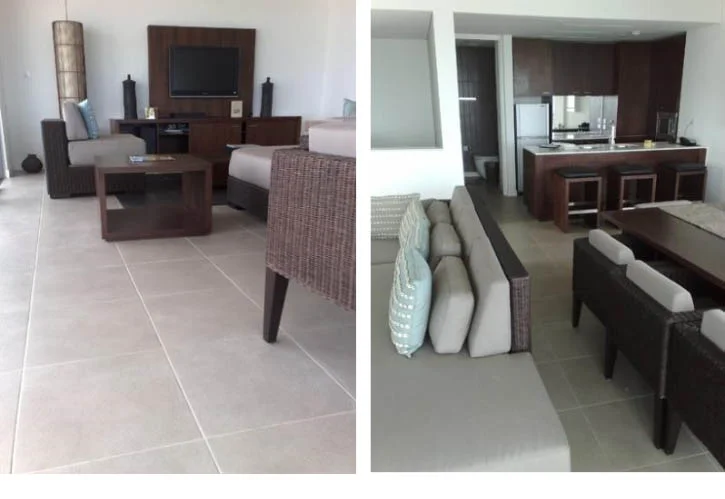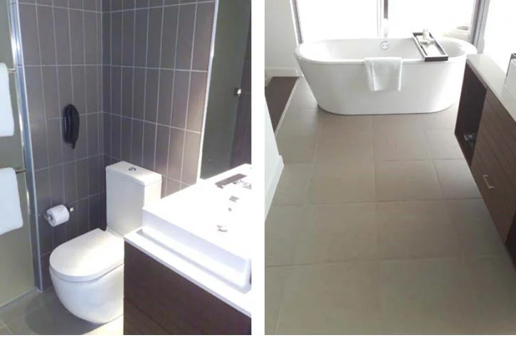 Foyer - Cream Porcelain 600 x 1200 Grit R11 - Chocolate 600 x 600 Rock R11